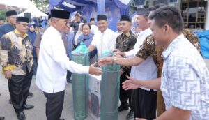 Setelah menyampaikan amanah, Bupati langsung melakukan tindakan nyata dalam bentuk kepedulian sosial. Bupati memberikan santunan kepada anak yatim yang ada di sekitar kecamatan, sekaligus menyerahkan bantuan berupa 1 unit speaker portabel dan dua gulung sajadah kepada Badan Kesejahteraan Masjid (BKM) Masjid Raya Nurul Islam, sebagai bentuk dukungan untuk mendukung aktivitas ibadah masyarakat.