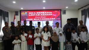 Usai berdoa bersama yang dipimpinan oleh 6 pemuka agama, acara dilanjutkan dengan pemberian santunan kepada anak yatim yang berasal dari 6 agama.