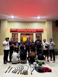 Polresta Bogor Kota berhasil mengamankan barang bukti berupa 2 buah sajam jenis golok, 7 buah sajam jenis celurit, 1 helm, dan 1 stick golf. Saat ini, para pelaku sedang dilakukan pemeriksaan oleh Sat Reskrim Polresta Bogor Kota.