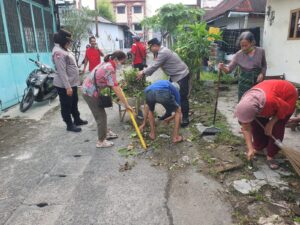 Polsek Medan Timur Adakan Kegiatan Gotong Royong bersama warga dari Kelurahan Gaharu Kec Medan.