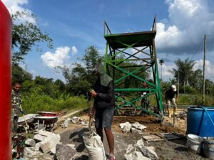 Sejak pagi hari, para personel Satgas TMMD terlihat bekerja bersama-sama memasang instalasi pipa yang terhubung dengan tandon air. Tahapan ini menjadi bagian penting dalam proses penyediaan air bersih, sehingga distribusi air dari sumur bor nantinya dapat berjalan dengan lancar dan menjangkau kebutuhan warga.