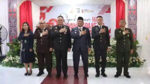 Syukuran hari Bhayangkara turut dihadiri Forkopimda Dairi, pimpinan OPD Pemkab Dairi, staf ahli TP PKK Kabupaten Dairi, Ny. Sri Dewi Wahyu Sagala. Kompi B/C 125 Sidikalang, keluarga besar Polres Dairi. (Manap)
